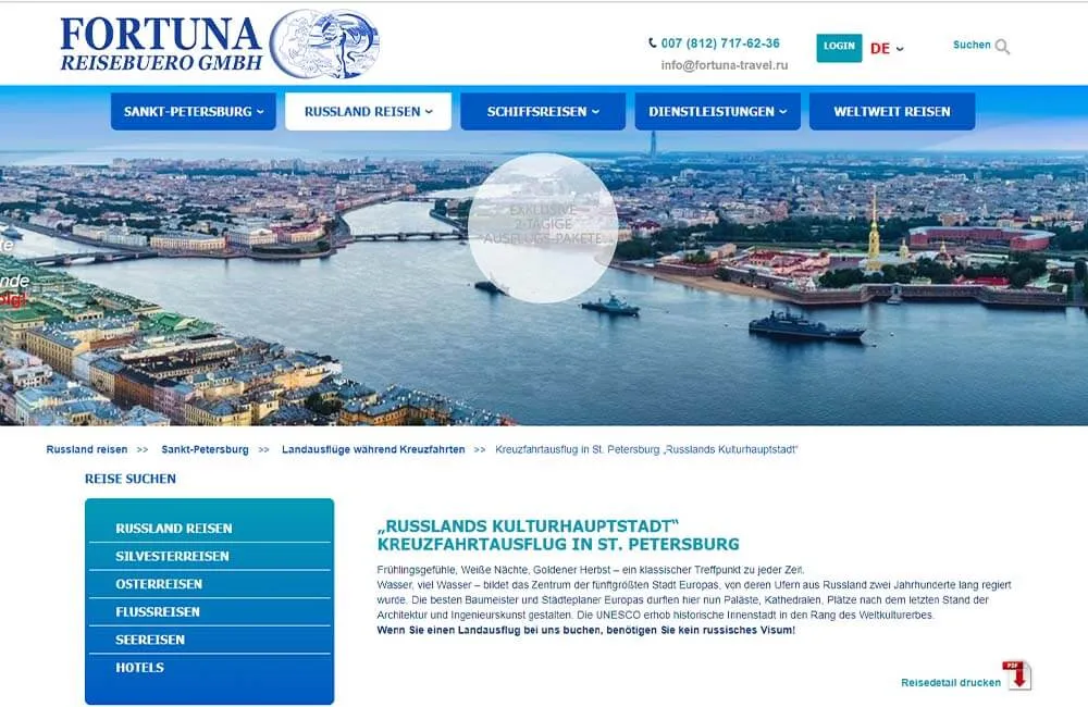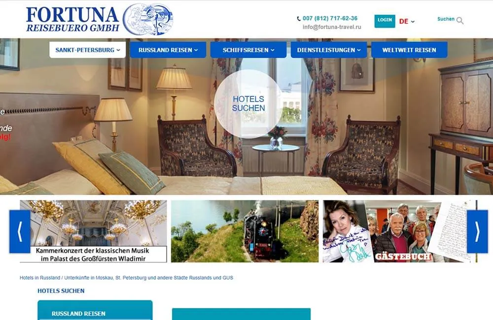 • Разработка индивидуального дизайна: главной страницы, каталога туров, каталога круизов, карточки круиза, информационных страниц
